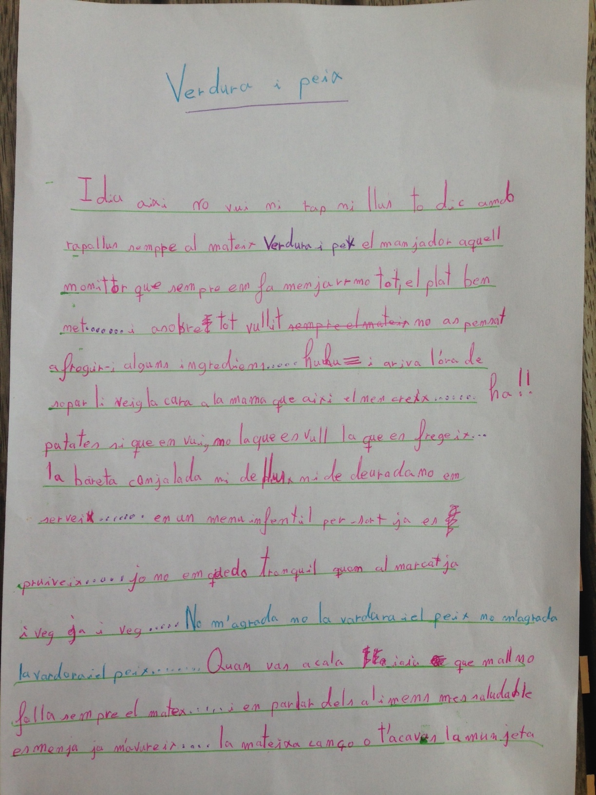 En Jan parla del desastre que suposa posar en un mateix menú verdura i peix… és un veritable drama als menjadors escolars. Hi ha casos, francament divertits, on tots els nens del menjador s’han posat a cantar “No m’ágradaaaaa, la verdura i peix…”