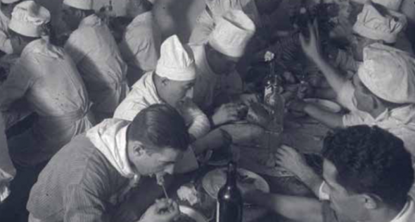 L’exposició mostra com diferents cuiners professionals s’implicaven amb la situació que els havia tocat viure i es convertien en referents domèstics de la cuina, proposant receptes i formes d’aprofitar els aliments, o restes d’aliments inversemblants per poder menjar i gaudir mínimament del menjar.