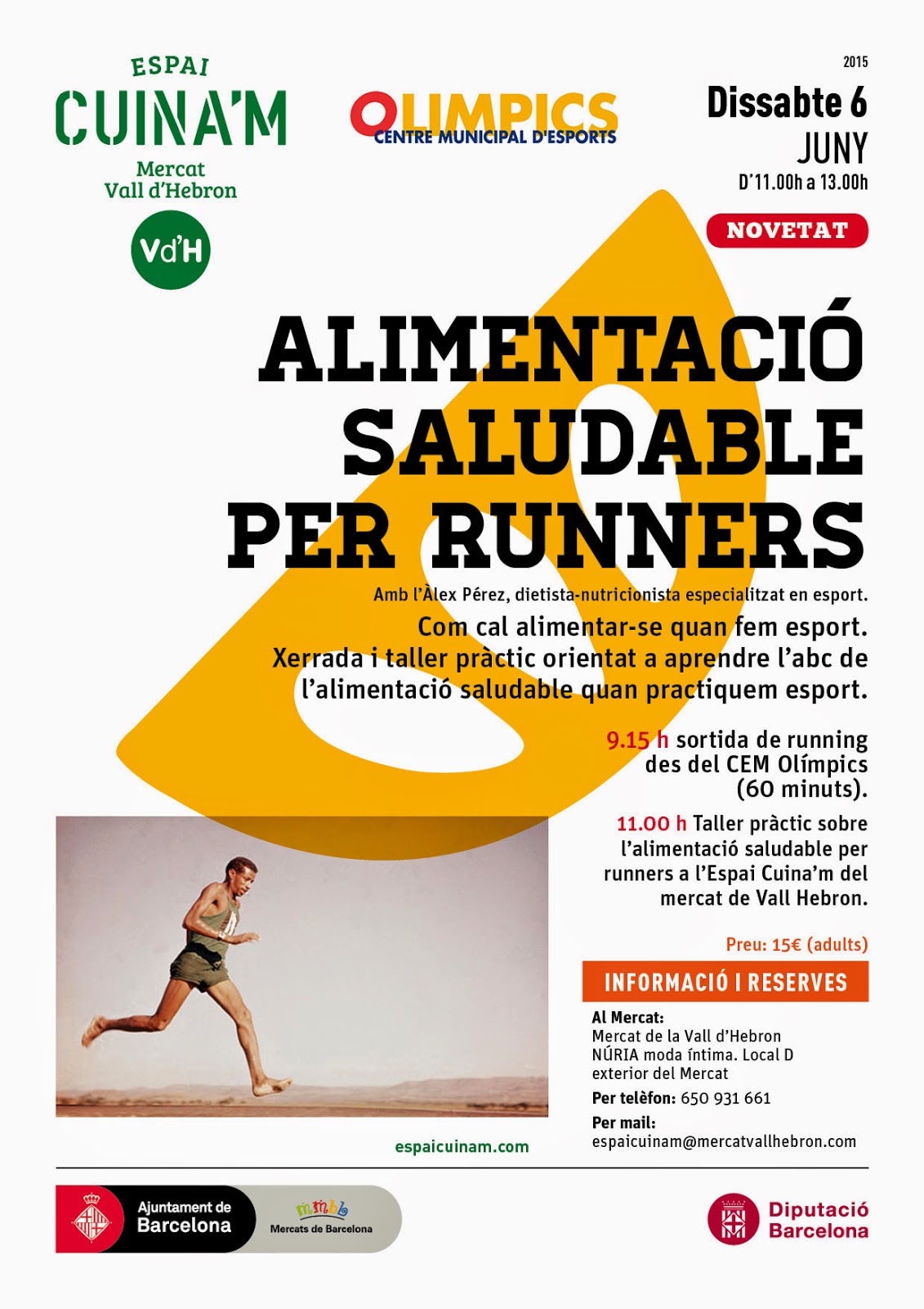 El 6 de junio, de 11 a 12:30 h, organizamos en CUINA´M, un taller de alimentación para corredores. Es de todos conocido que la alimentación puede mejorar nuestro rendimiento deportivo. Si planificamos nuestro entrenamiento, deberíamos tener en la misma consideración nuestra alimentación. Por salud y por rendimiento.