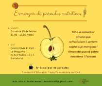 La Comissió d’Educació de la Taula Comunitària del Coll ha organitzat el proper 29 de febrer una jornada oberta a tothom, en forma d’esmorzar, sobre alimentació conscient i on participen diferents professionals de la salut i entitats. La Comissió